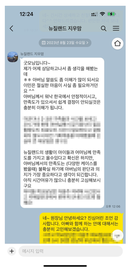 뉴질랜드 유학 후 이민 – 뉴질랜드 지우맘과 함께한 1년 간의 상담 후기글은